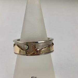 Step into the realm of personalized storytelling with a custom-made story ring. Each ring is meticulously crafted to reflect the essence of your unique interests and experiences. I work closely with you to bring your vision to life, transforming your cherished memories and hobbies into wearable art.  As you wear your ring, you carry with you not just a piece of jewelry, but a personal narrative—a reflection of who you are and what brings you joy.