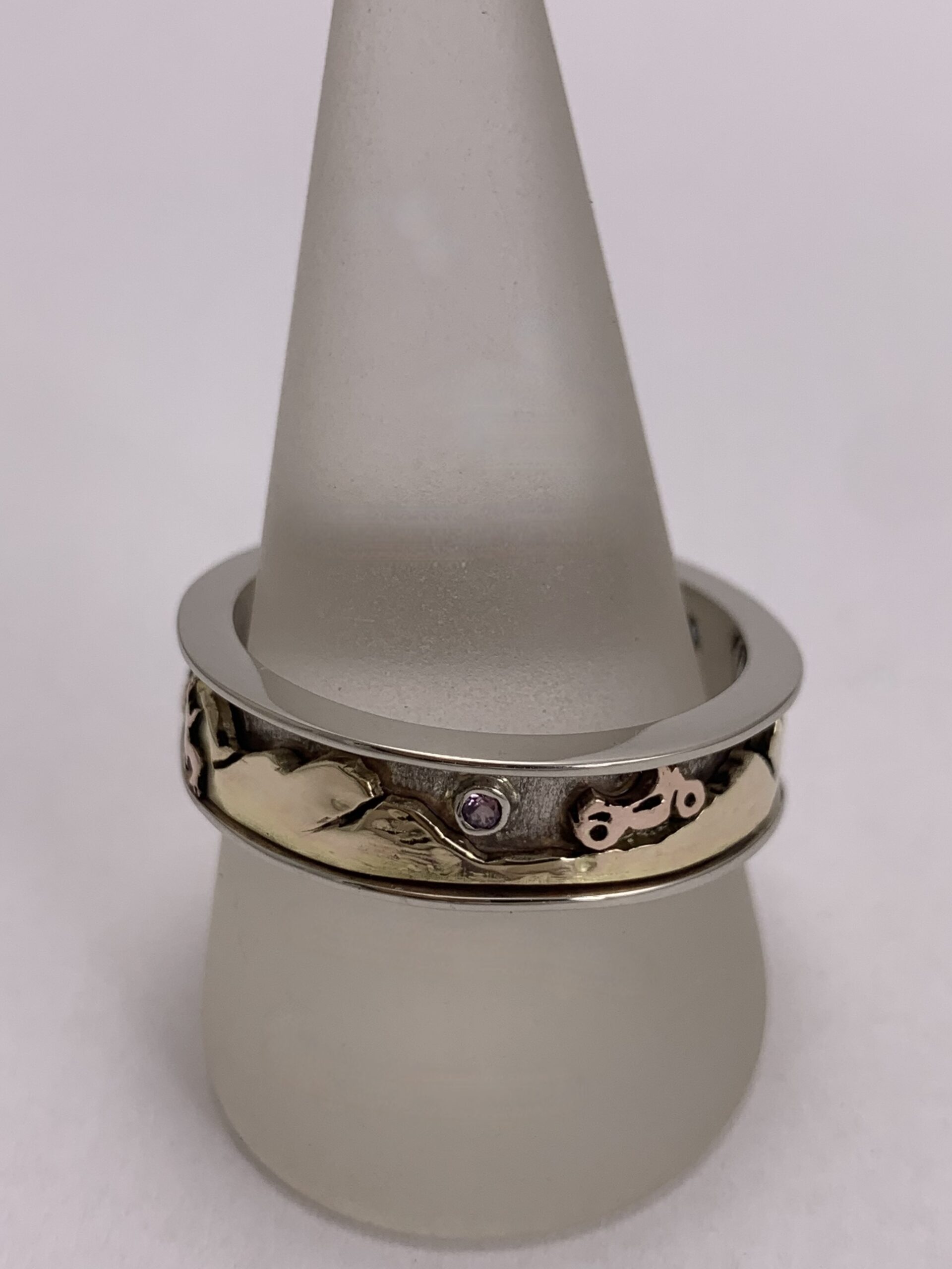 Step into the realm of personalized storytelling with a custom-made story ring. Each ring is meticulously crafted to reflect the essence of your unique interests and experiences. I work closely with you to bring your vision to life, transforming your cherished memories and hobbies into wearable art.  As you wear your ring, you carry with you not just a piece of jewelry, but a personal narrative—a reflection of who you are and what brings you joy.